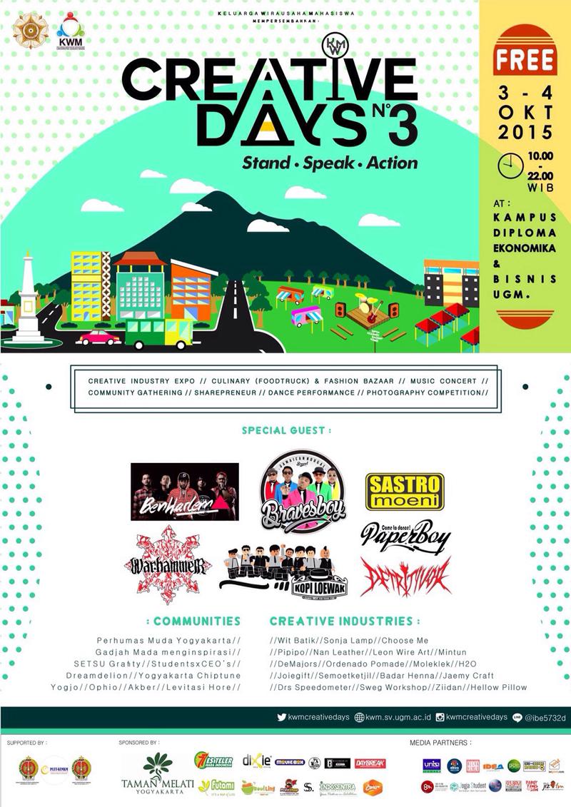 CREATIVE DAYS #3 | 3-4 Oktober 2015, Kampus Diploma Ekonomi & Bisnis UGM, 10AM-10PM | FREE | Info
