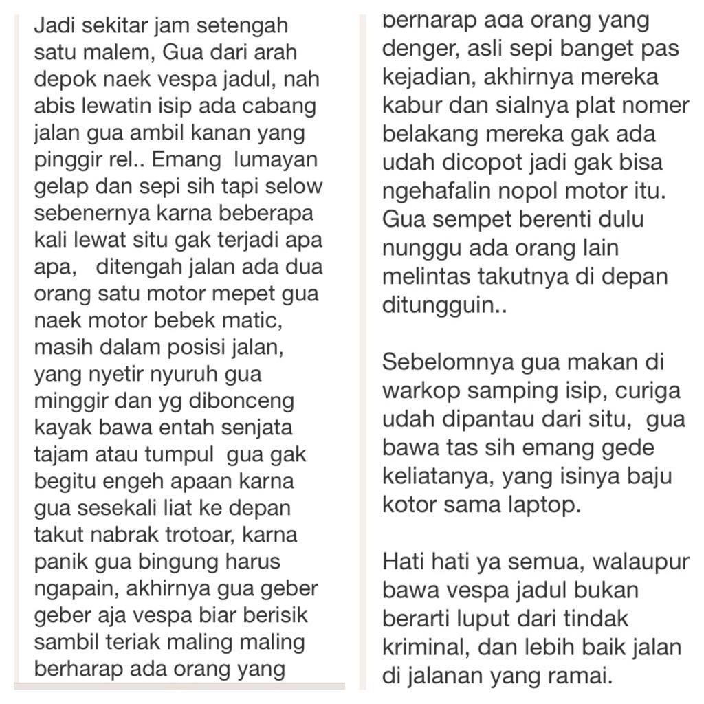adjis tweeted: Semalem hampir kena rampok/begal/jambret atau apalah itu namanya yang bikin deg-degan asli.