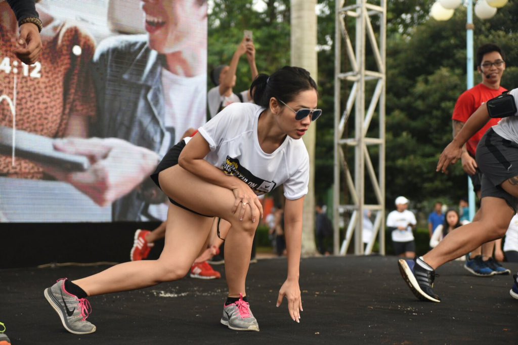 sedang melakukan pemanasan untuk