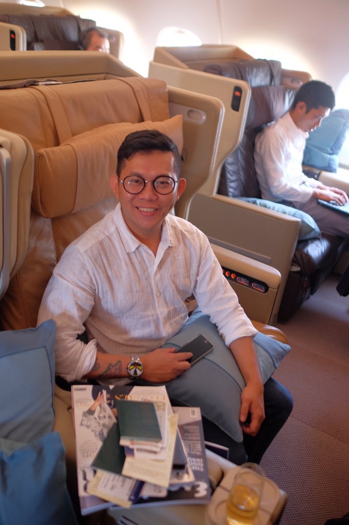 A380 ke Tokyo, business class-nya ada di lantai dua. Kursinya muat dua orang 😆😆 LEGA!