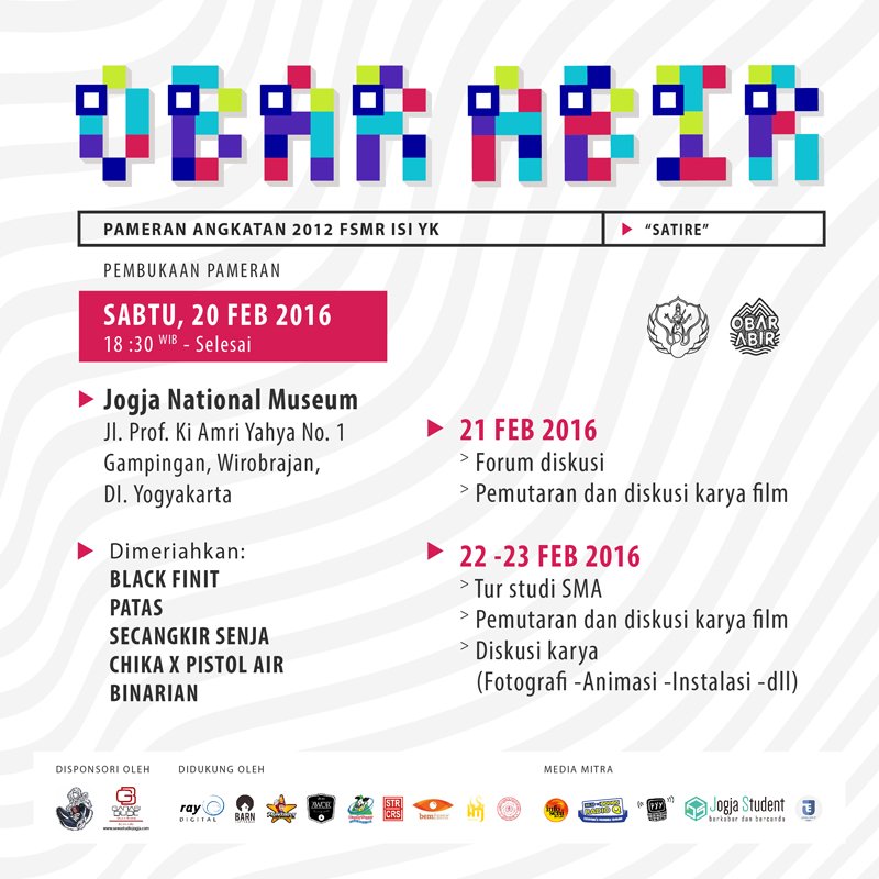 Pameran Angkatan 2012 FSMR ISI Yogyakarta: Obar Abir | 20-23 Feb, Jogja National Museum | Opening 20 Feb, 18.30