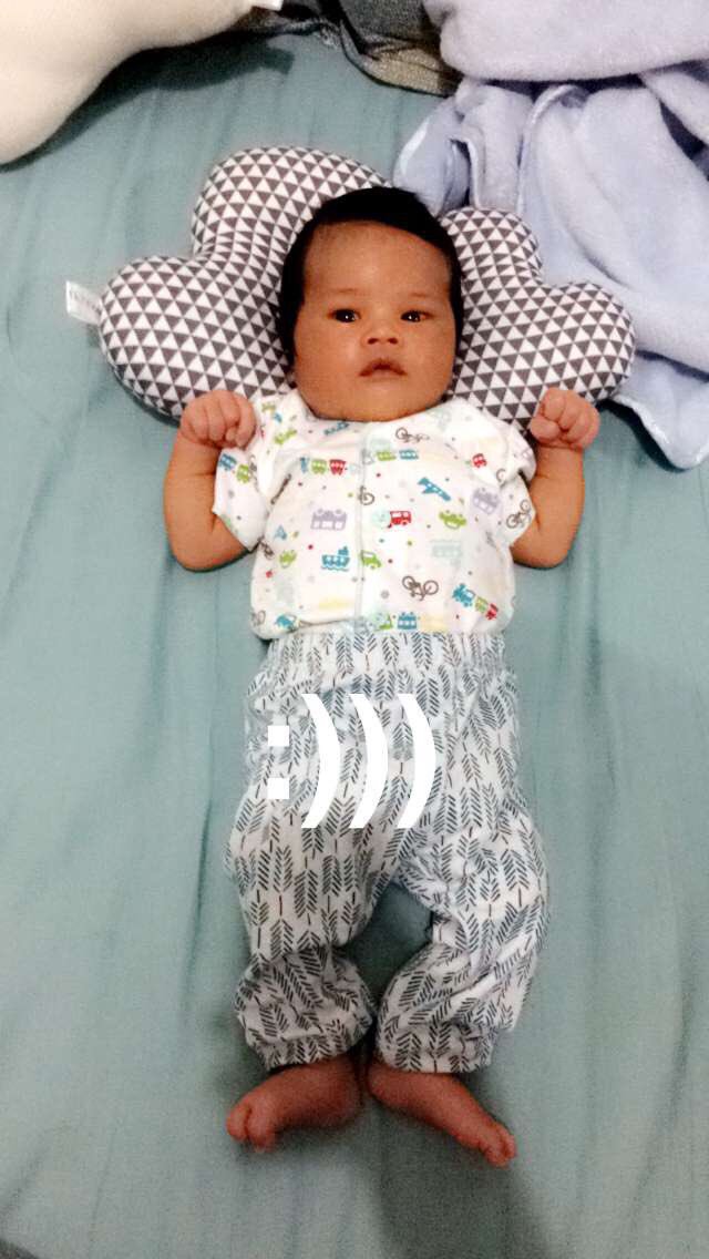 Sedari lahir si Trah ga pernah pake bantal peyang, nah iseng nyobain. Eeeh dianya ngefreeze gt :))
