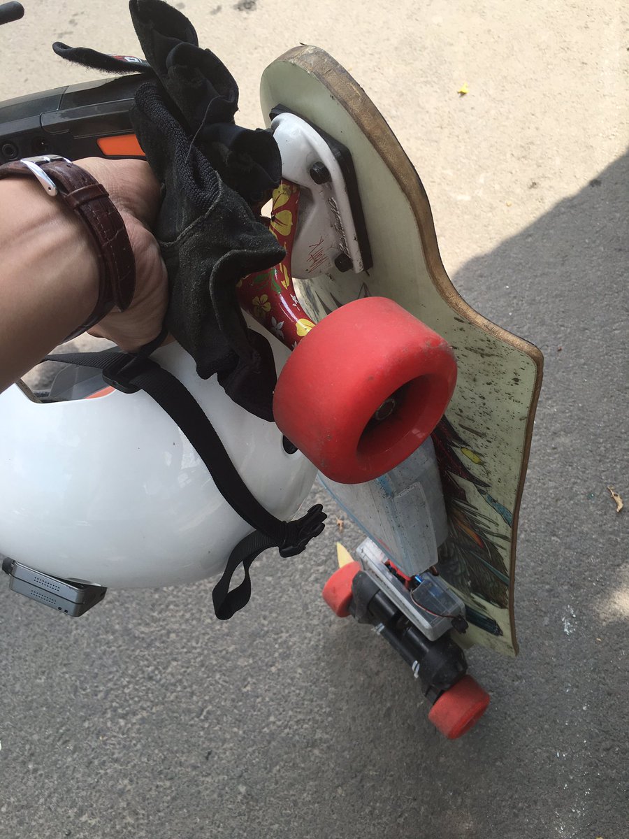 Dari pagi udah ke kantor klien, pake longboard electric. Macet. 😒
