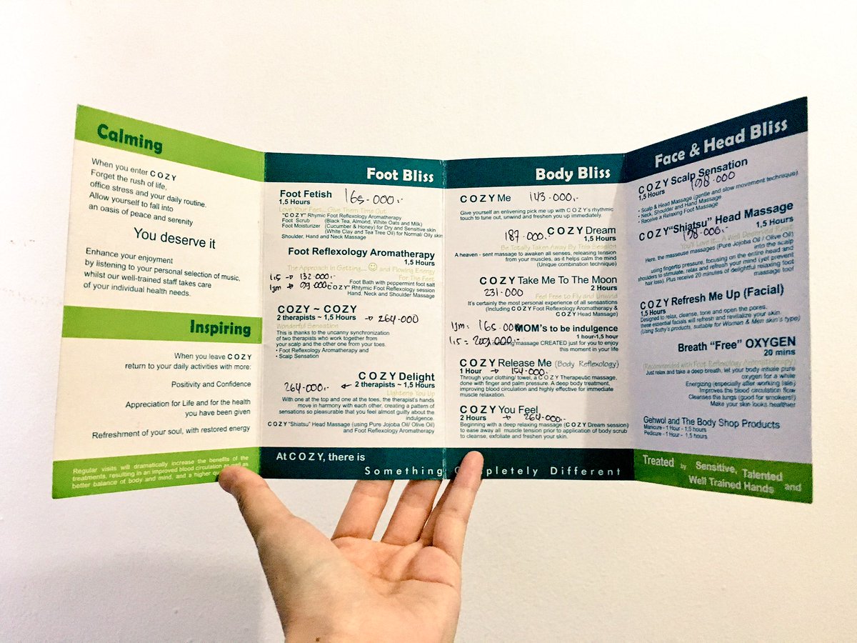 Cozy: t4 pijet yg direkomendasikan bebrp tweeps dan skrg jd favorit. Di Gandaria. Ini dftr harganya. Silaken di-like