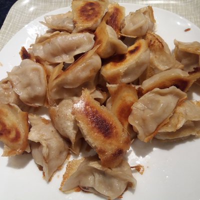 今晚简单,做了点锅贴, 再配个紫菜蛋花汤就齐了。😄